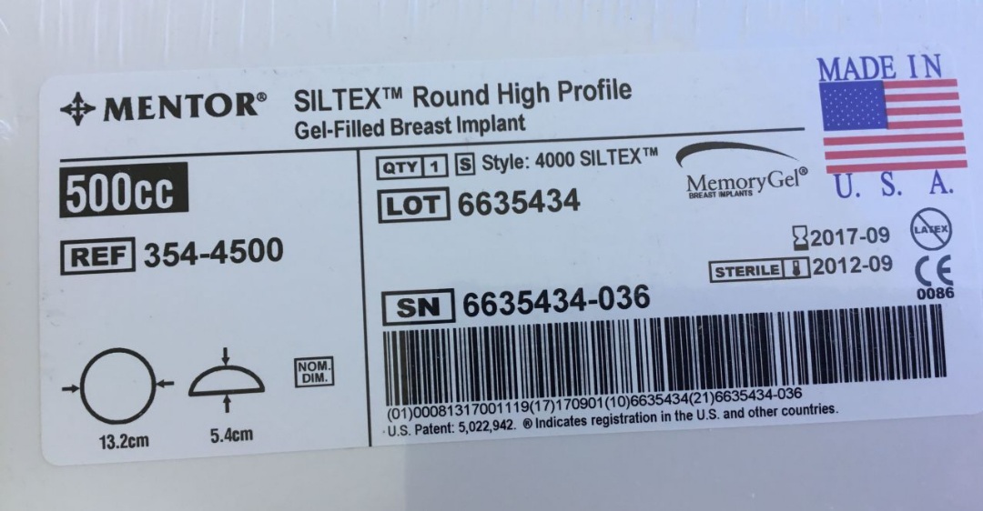 Bij mijn allergan implantaten, die zijn nog heel kan ik duidelijk de merknaam, lot nummer en gewicht zien staan. Allergan geeft gewicht aan in gram op deze implantaten.