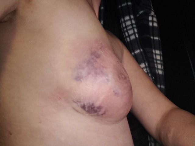 Blauwe plekken beginnen wat af te nemen....en merk dat de borsten wat beginnen te jeuken...