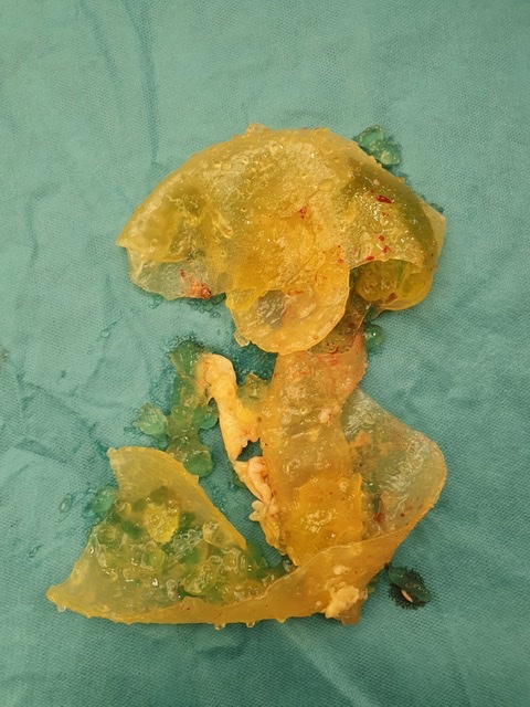 Bij deze de foto's van mijn 15 jaar oude Mcghan implantaten. Ze zijn vorige week donderdag verwijderd en de pc feliciteerde me dat ze nog helemaal intact waren en ook niet hadden gezweet.