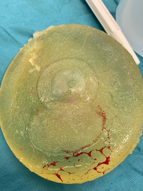 Bij deze de foto's van mijn 15 jaar oude Mcghan implantaten. Ze zijn vorige week donderdag verwijderd en de pc feliciteerde me dat ze nog helemaal intact waren en ook niet hadden gezweet.