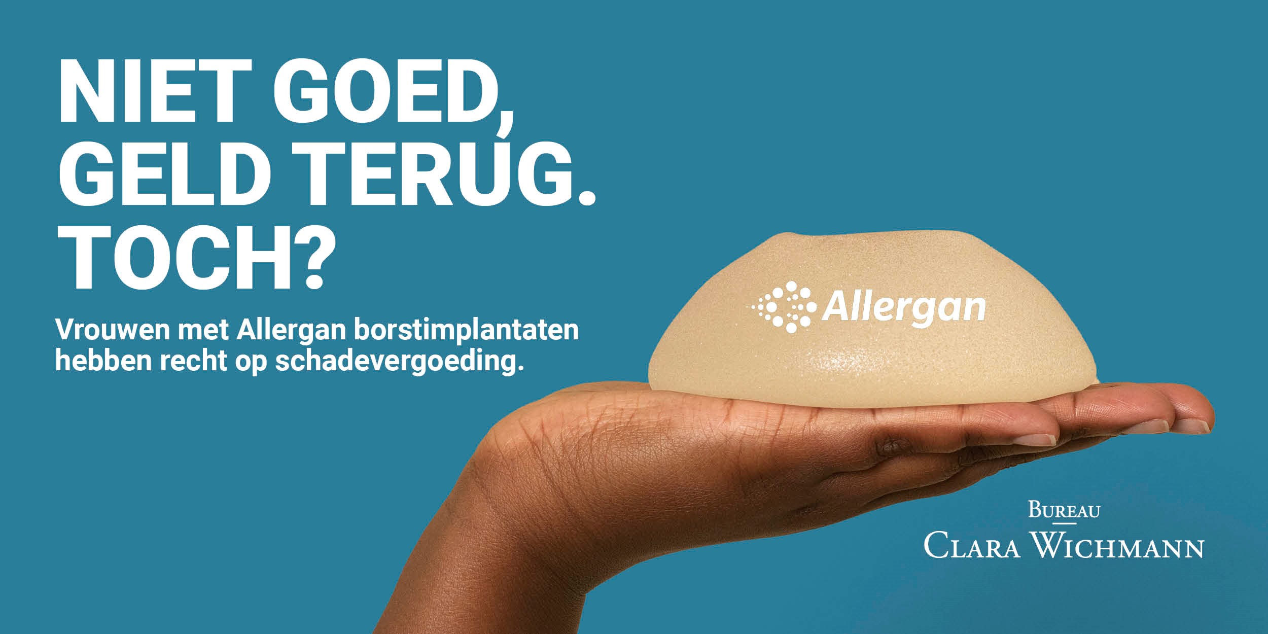 We zijn op zoek naar informatiefolders uit 2016 of 2017. Heb jij in deze periode een informatiefolder van Allergan ontvangen bij jouw implantatie en ben je bereid deze met ons te delen? Dan ontvangen we deze graag via siliconenzaak@clara-wichmann.nl.