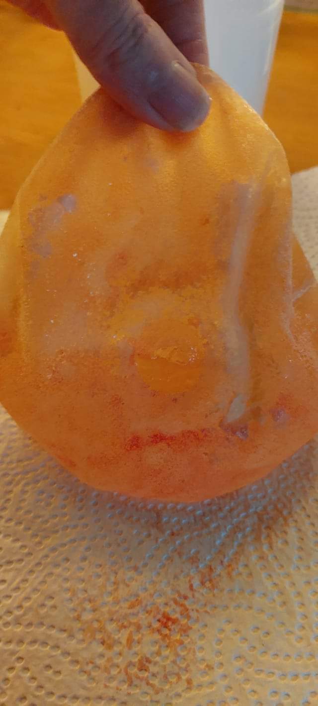 Verwijderd implantaat van Margreet (dame die borstkanker had en was geamputeerd)