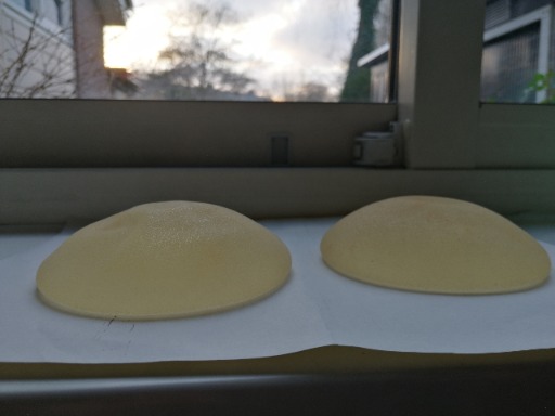 Hier mijn intacte protheses. Waren eurosilicone van bijna 17 Jr oud. 200 cc. Ze zijn dus wel goed verkleurd. En de ene is iets gedeukter dan de ander. Die weegt ook 2.2 gr minder. Dat is iets minder dan het gewicht van een theezakje, en daar zitten al best wat ZICHTBARE deeltjes in. Er is dus weldegelijk iets gaan zweten lijkt me!? Gelukkig dus minimaal!