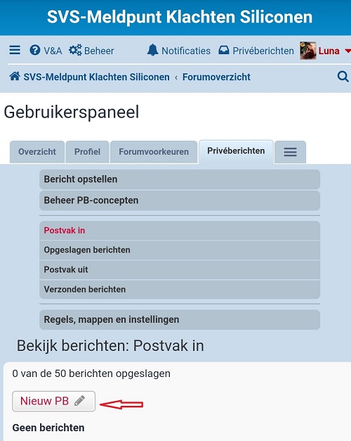 Om privéberichten te versturen of te lezen volg je deze stappen: