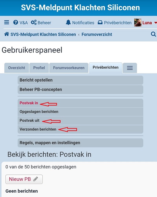 Bij 'Postvak in' zie je berichten staan die andere leden jou hebben verstuurd.