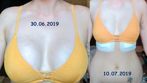 Hoi allemaal We zijn een paar daagjes verder. Ondertussen kan ik mijn degelijke sportbeha dragen en vandaag eens lekker gedoucht en de pleisters vervangen en wondje een beetje ontsmet Een pleister heb ik zelf kunnen afdoen en verzorgen maar de andere heb ik toch hulp van mama ingeschakeld omdat manl...