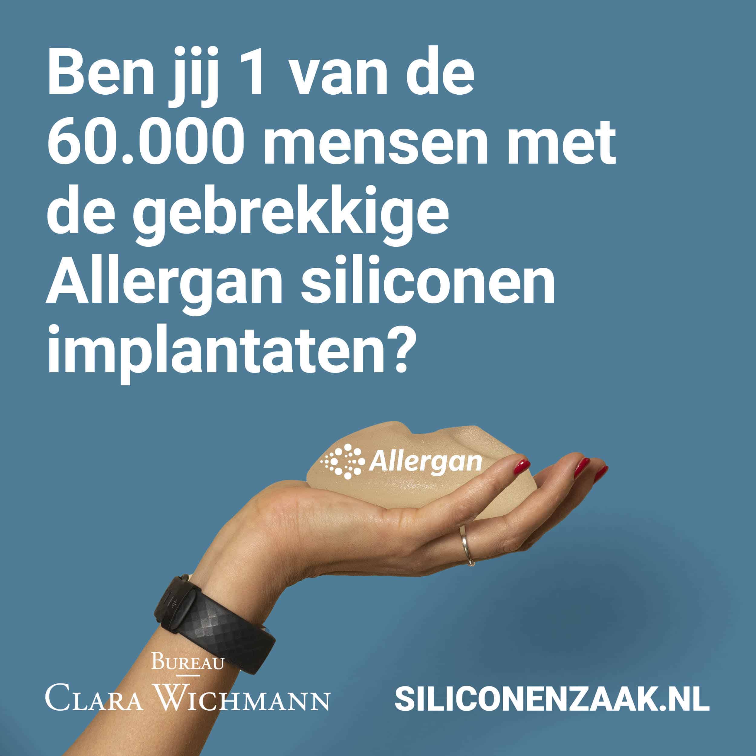 Bureau Clara Wichmann is op zoek naar vrouwen die de Allergan borstimplantaten hebben of hadden. Heb jij je nog niet aangemeld? Het kan nog steeds! Zie www.siliconenzaak.nl