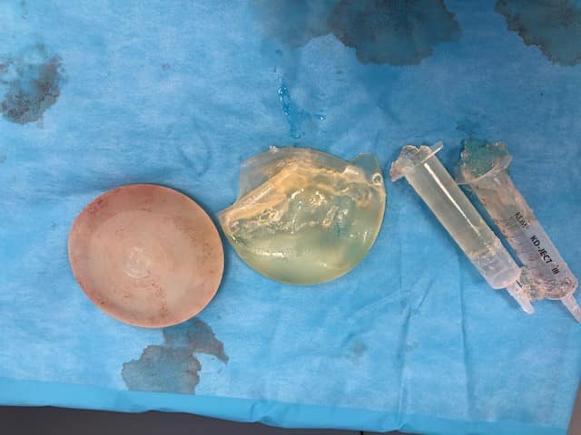 De implantaten bleken inderdaad nog intact! Ik denk dat men op de OK in een van de 2 een snee heeft gemaakt om naar de inhoud te kijken? Want ik wist nl. niet wat voor materiaal er bij mij ingezet was. Het waren dus wel degelijk siliconen en nu zag ik ook op de implantaten van welk merk, nl. EuroSilcione uit Frankrijk!