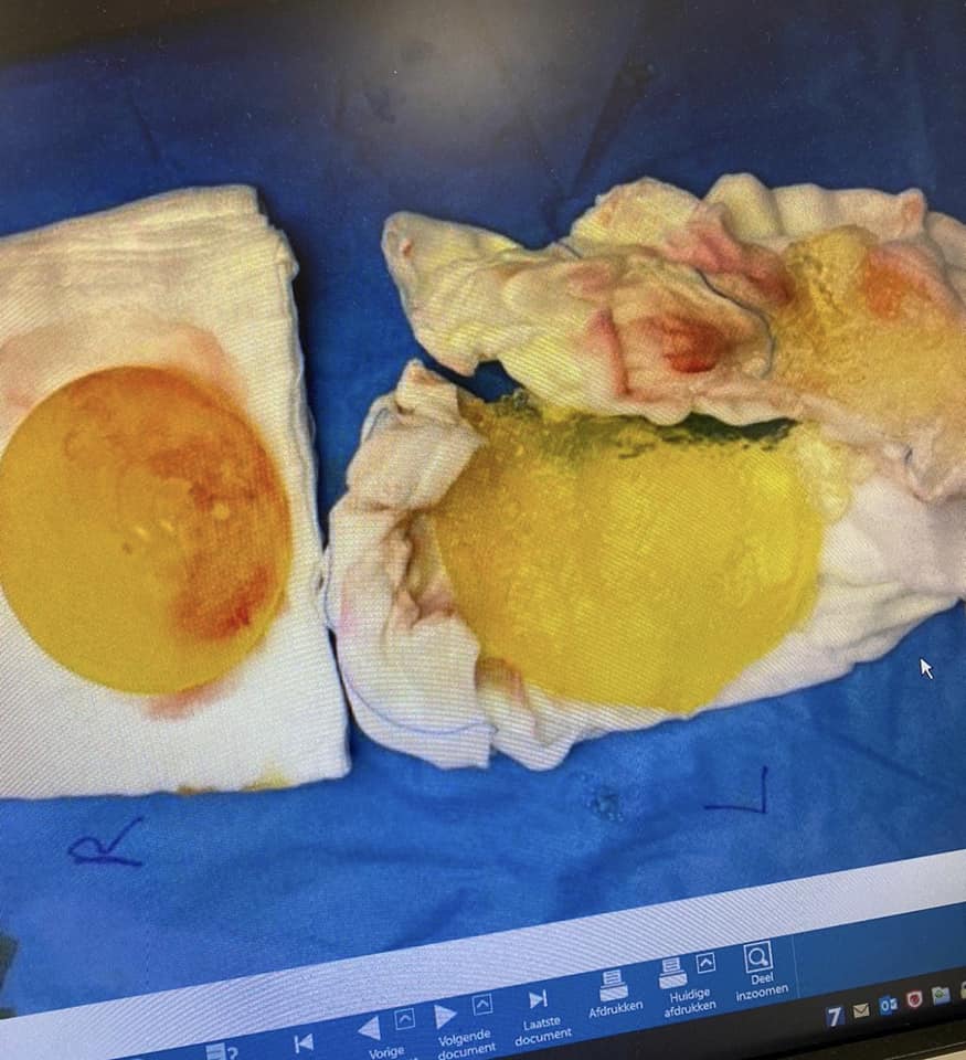 Implantaten en kapsels van Linda77 die vandaag werden verwijderd.