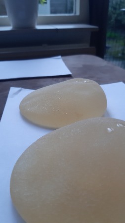 Bij deze de foto's van mijn 15 jaar oude Mcghan implantaten. Ze zijn vorige week donderdag verwijderd en de pc feliciteerde me dat ze nog helemaal intact waren en ook niet hadden gezweet.